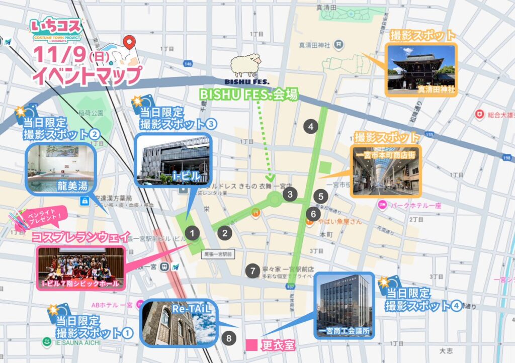 当日は一宮商工会議所を有料の更衣室として開放し、参加者はBISHU FES.会場や周辺スポット、当日限定のフォトスポットで撮影を楽しむことができます。