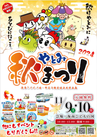 11月9日・10日の2日間、海南こどもの国で「やとみ秋まつり」を開催します。