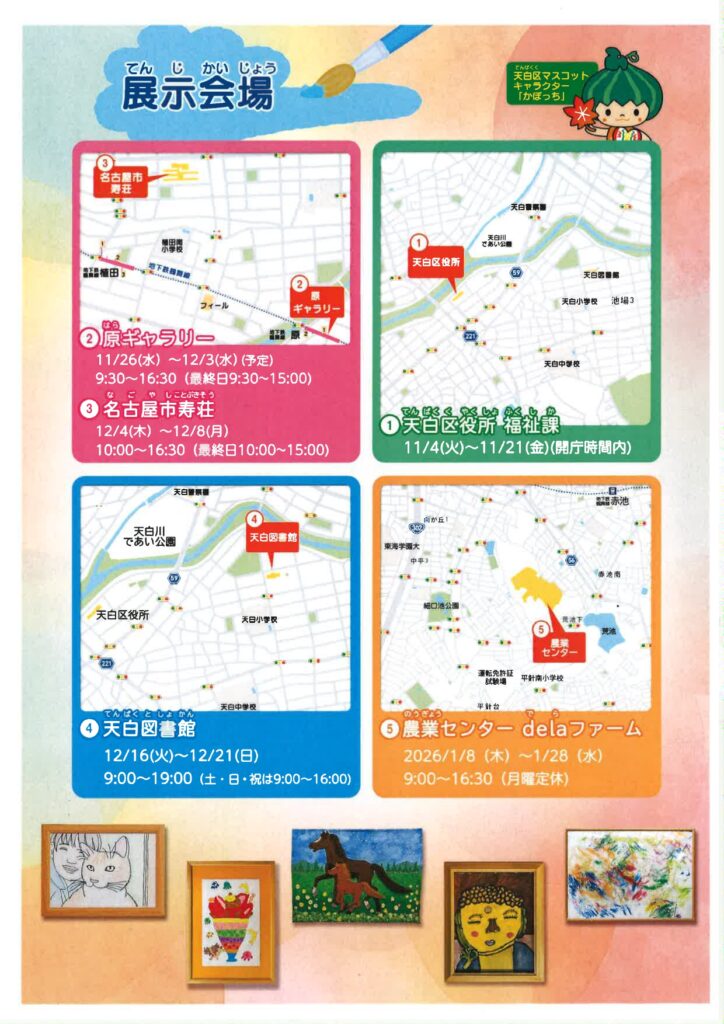 「顔のみえるアート展てんぱく2025」は、天白区障害者自立支援連絡協議会が主催する、障がいのある方が制作・実演したアート作品の展覧会です。