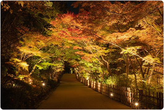 昼間は動物園エリアも含め紅葉を楽しみ、夜はライトアップされた植物園で幻想的な紅葉風景を堪能でき、名古屋市内中心部にいながら、まるで山野の中にいるかのようなモミジの景色が味わえます。