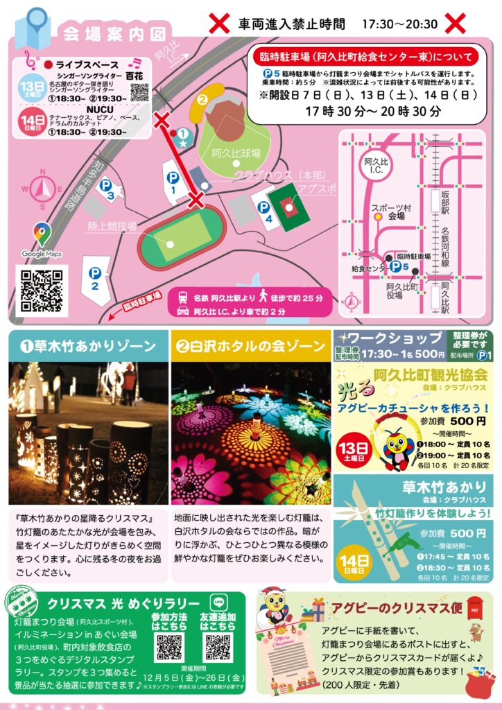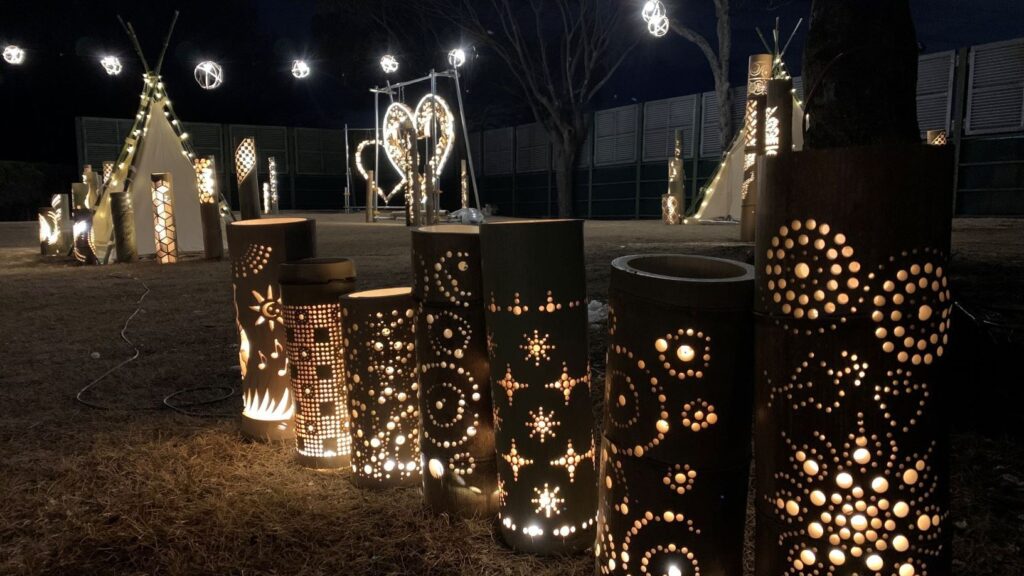 あたたかな竹あかりや色鮮やかな灯籠が会場を照らし、冬の阿久比を幻想的に彩ります。