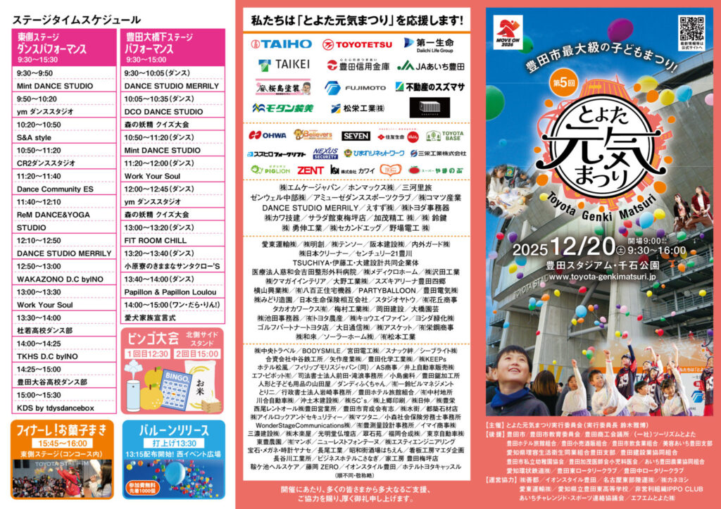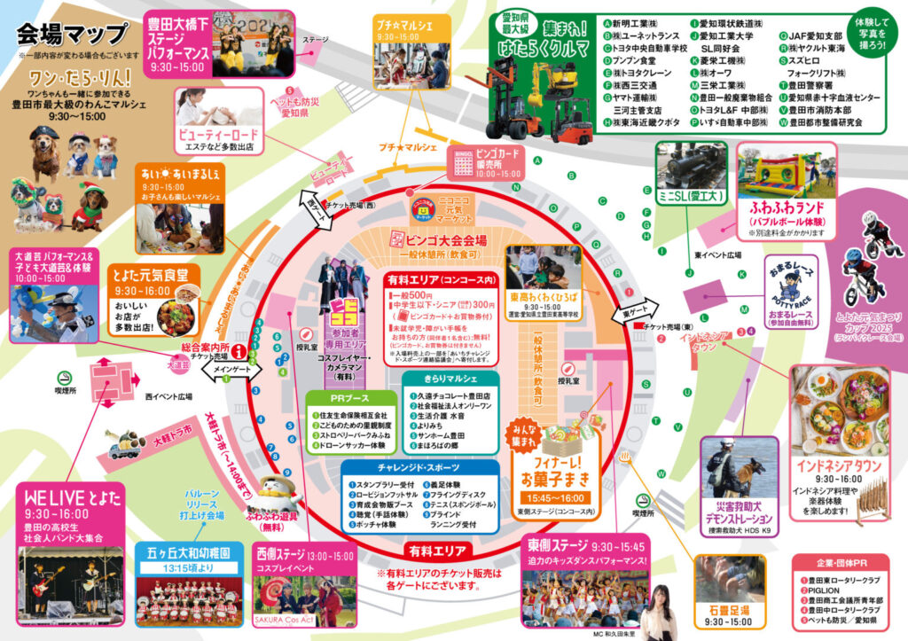 会場では、豊田大谷高校ダンス部やキッズダンス教室の生徒によるダンスステージのほか、大道芸人のパフォーマンス、高校生バンドの演奏などが披露される。また、はたらくクルマの展示や親子で楽しめるフリーマーケットなど、子どもが主役となる内容を中心に展開する。