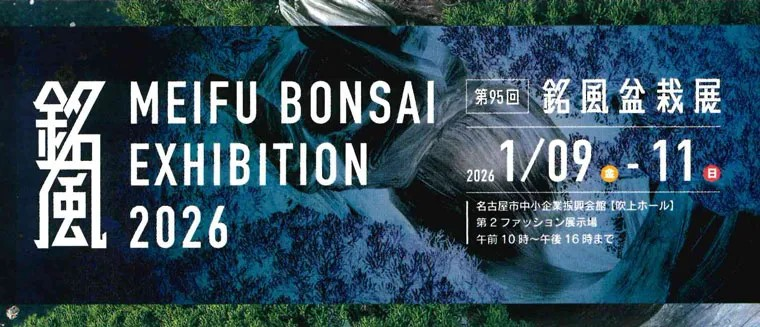 銘風盆栽展(めいふうぼんさいてん)は、名古屋で毎年新春に開催される中部地方最大級の伝統ある盆栽展です。中部盆栽界を代表する老舗の展示会として知られ、「国風展に次ぐ歴史を誇る展示会」と称されるほど、長い歴史と高い評価を築いてきました。