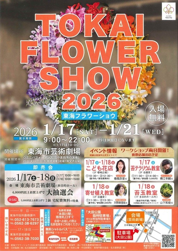 全国有数の洋ラン産地である東海市で、年に一度の花と緑の祭典「TOKAI FLOWER SHOW 2026」が東海市芸術劇場にて開催されます。