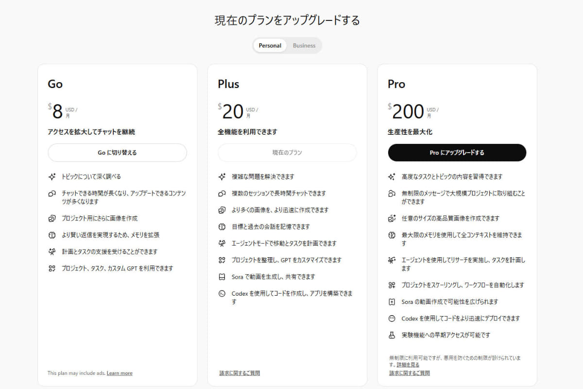 これにより、ChatGPTは無料版、Go、Plus、Proの複数プランによる段階的な提供体制を強化した。