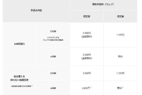 ソフトバンク、去年8月に値上げしたWebでの事務手数料を改訂 eSIMは無料