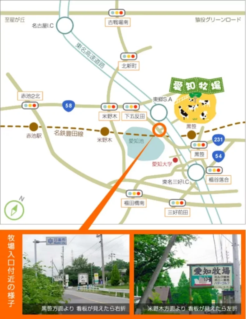 名古屋近郊で車約30分、名鉄豊田線「黒笹駅」から徒歩約10分とアクセス良好で、夏タイヤや地下鉄での来場も可能で、牧場ならではの動物ふれあい、引き馬、乗馬体験、BBQ、菜の花畑、巨大アスレチック、乳しぼり体験など家族みんなで楽しめるコンテンツも充実しています。