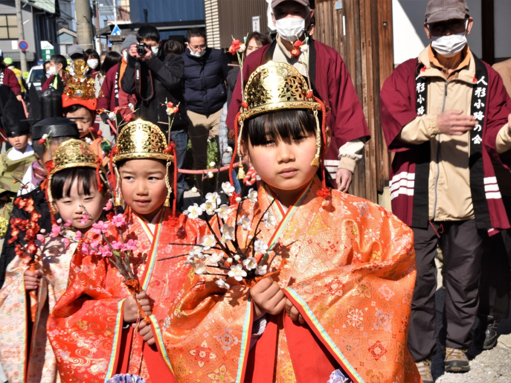 ちびっこ達がお雛様の衣装をまとって町を歩く毎年大人気のイベントです。