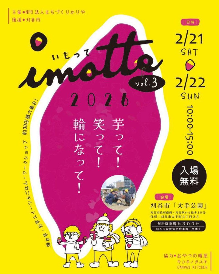 2月21日(土)・22日(日)の2日間、大手公園にて『imotte vol.3』が開催されます。