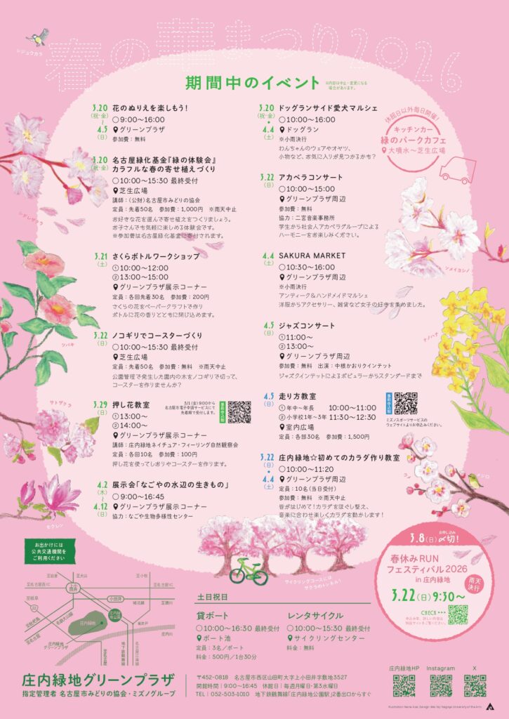 「庄内緑地 桜と菜の花まつり」は、庄内緑地で毎年開催される春の恒例イベントで、庄内川の小田井遊水地を活用したこの公園は「水と緑と太陽」をテーマにした総合公園で、広い園内では自然観察やスポーツ、散策などが楽しめます。