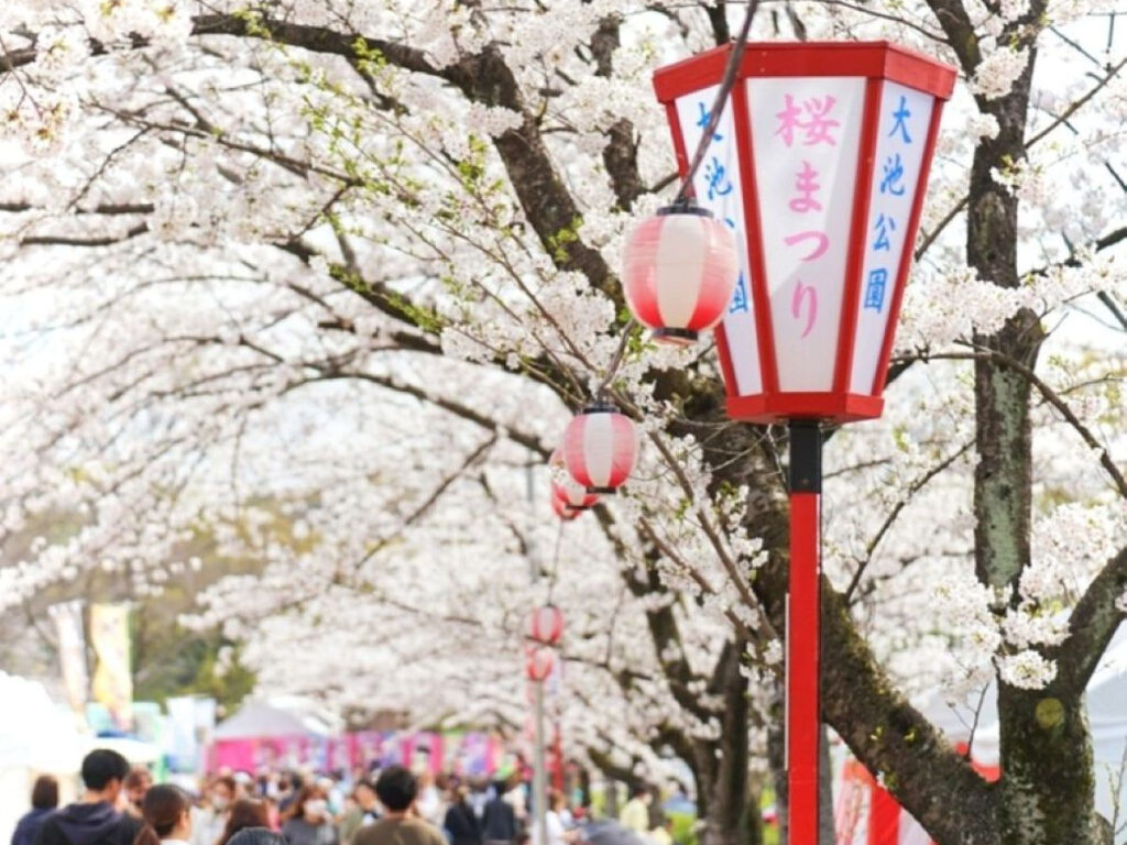 大池公園では、春になると園内に咲き誇る桜を楽しめる「桜まつり」が開催され、公園にはソメイヨシノをはじめとした8種類、約700本の桜の木があり、公園一帯がやわらかな春色に染まります。