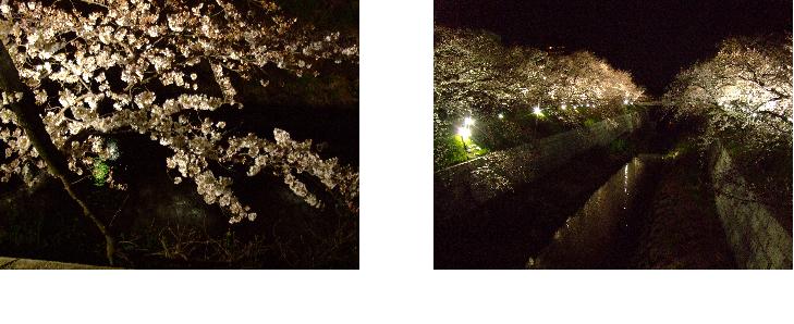 また、田辺公園付近では川岸に降りて間近で桜を眺めることもでき、見頃となる3月下旬から4月上旬には、かなえ橋から鼎小橋南側までの約120m区間でライトアップが実施され、夜には幻想的な夜桜が楽しめます。