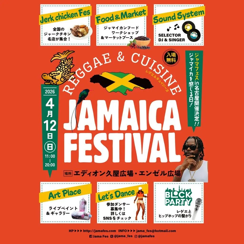 「ジャマイカを感じる日」「HIPHOPを楽しむ日」をテーマに、世代を問わず誰もが気軽に参加できる“出会いの場”として親しまれてきた本イベント、街中で異国の空気を感じながら、食べて、観て、踊って過ごす時間はまさに特別な体験で、春の1日限りのジャマイカ旅行気分を名古屋で味わってみてはいかがでしょうか。