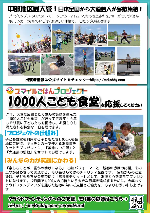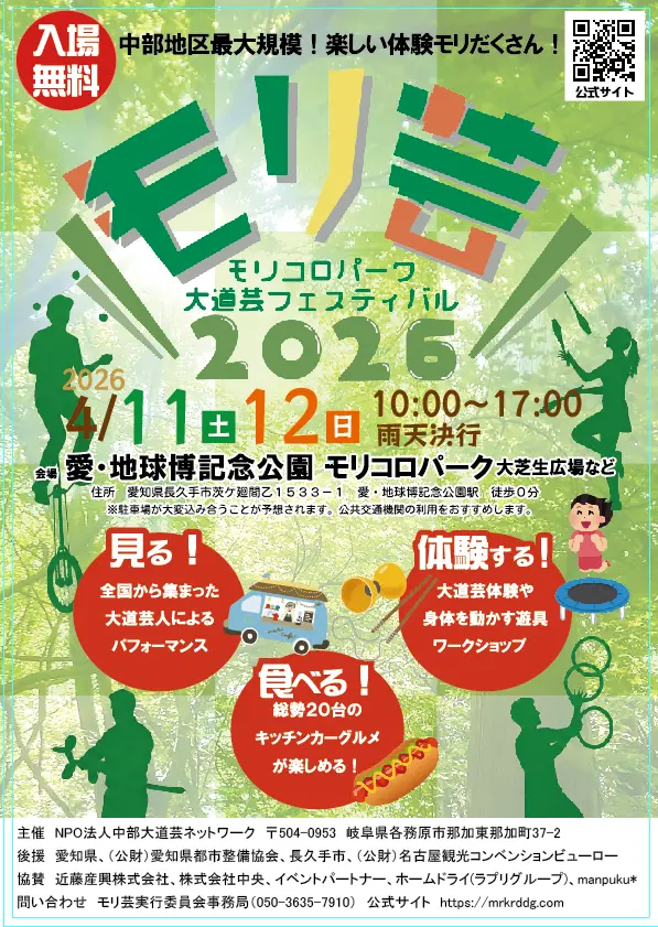 長久手市にある愛・地球博記念公園モリコロパークの大芝生広場を中心に、4月11日(土)・12日(日)の2日間、モリコロパーク大道芸フェスティバル(第14回)が開催されます。