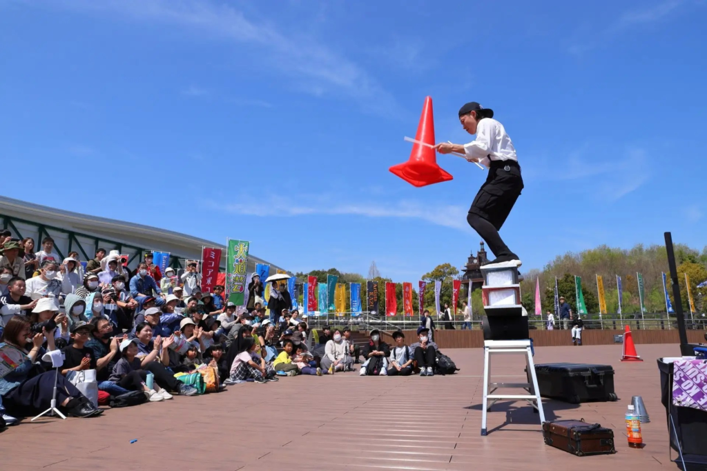 会場内ではジャグリングやバルーンアート、パントマイム、マジック、バランス芸、アクロバットなど、子どもから大人まで楽しめる演目が随所で繰り広げられ、園内を巡りながら1日中飽きることなく観覧できます。